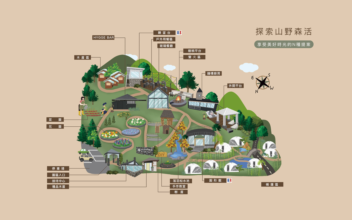 超過萬坪的 Glamping Hygge Hill 山野森活的營區場地都是你的酒吧,拿著調酒、飲料,輕鬆自在地悠遊,賞玩花卉,坐看雲起。